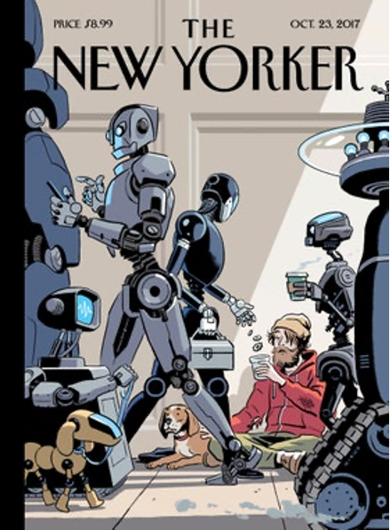 This question and the following cover of “The New Yorker” magazine unleashed the first discussion. Will the robots have taken over and the humans will just be some side characters? Will we have advanced that far, that robots will do all our tasks and chores while only poor people who cannot afford them will be left behind? Or will humans behave like robots because they concentrate on their work and only people without a job stay “human” and live and enjoy life like we are used to right now? These are all possibilities, but ultimately, no one knows what life in the future will be like. The only thing we do know yet is, that it won’t be the way it is right now.