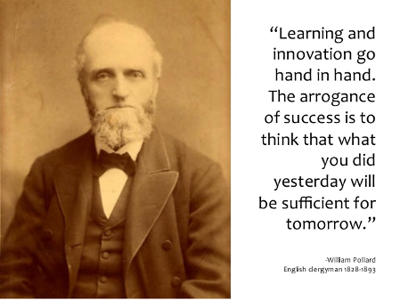 Digitalisation will destroy our jobs! It will destroy entire industries! Yes, this may be the case in the future or has already happened. Terrible, right? No! Not really, because companies or people who complain like that are often the same that don’t want to follow the progressing digitalisation. They missed it. “Everything used to be better” or “The good old times” are other statements which often support such a worldview. But this is usually the mindset which initiates failure. The quote of William Pollard sums it up, if we do not look forward and try to innovate, we will be left behind and disrupted eventually.
