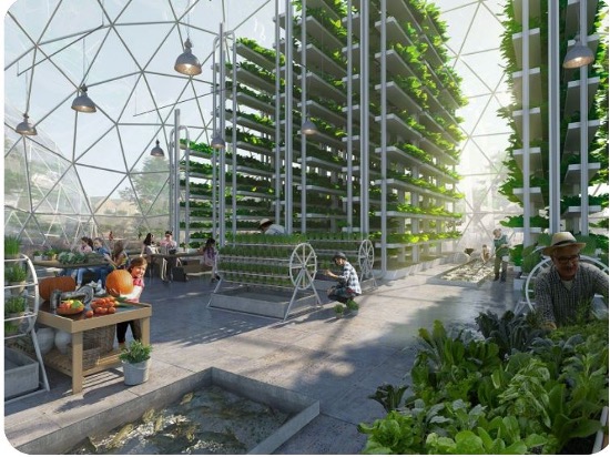 This urban expansion could stress the agricultural system, as «processes of suburbanization and patterns of urban sprawl can have profoundly detrimental effects upon local food production and regional food security» (Newman and Nixon, 2014). A vision of a new urban structure designed for and implementing steps towards a regenerative future is a matter of interest. A futuristic solution can be found in food architectonics. A view of enhancement of food architecture aspects, in particular with regards to cultivation, processing and trades (FoodArchitecture, 2022), lies in the concept of ecovillages.