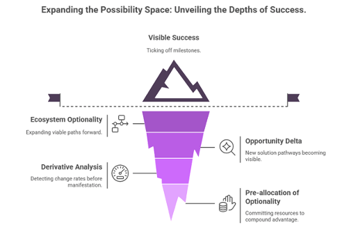 And here is the key insight: The unit of success is not whether a milestone was ticked off, but whether the ecosystem’s optionality expanded. [4] Success is not hitting your targets. Success is having more viable paths forward than you did before.